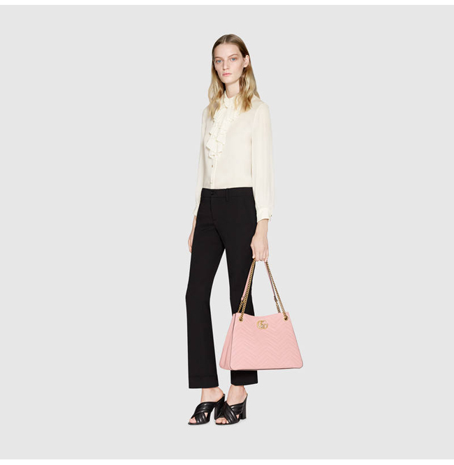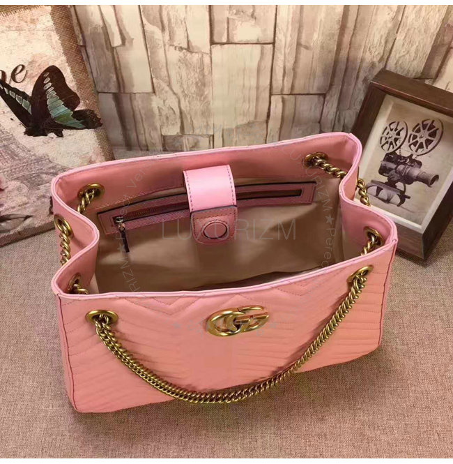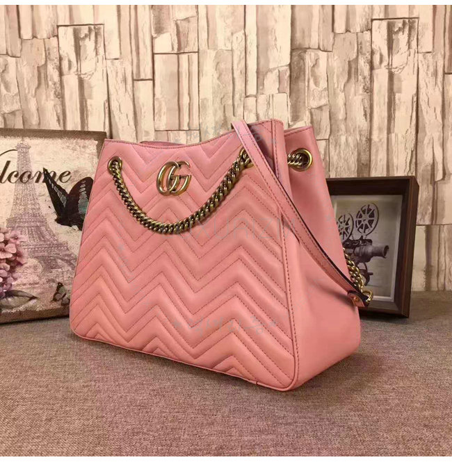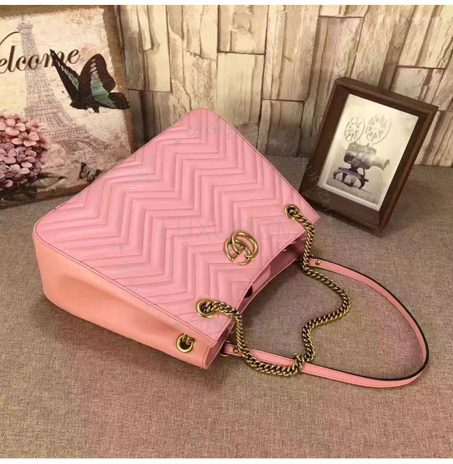 GUCCI-453569 5909 구찌 GG Marmont 마몽 마틀라세 더블G메탈 미디엄 체인 숄더백 핑크