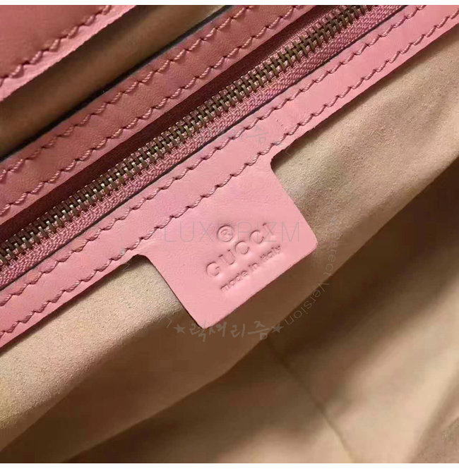 -2017 크루즈 컬렉션/핑크 마틀라세 쉐브론 가죽 뒷면에 GG 디테일/앤틱 골드 톤 메탈 디테일.