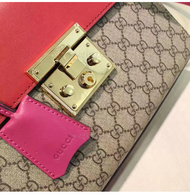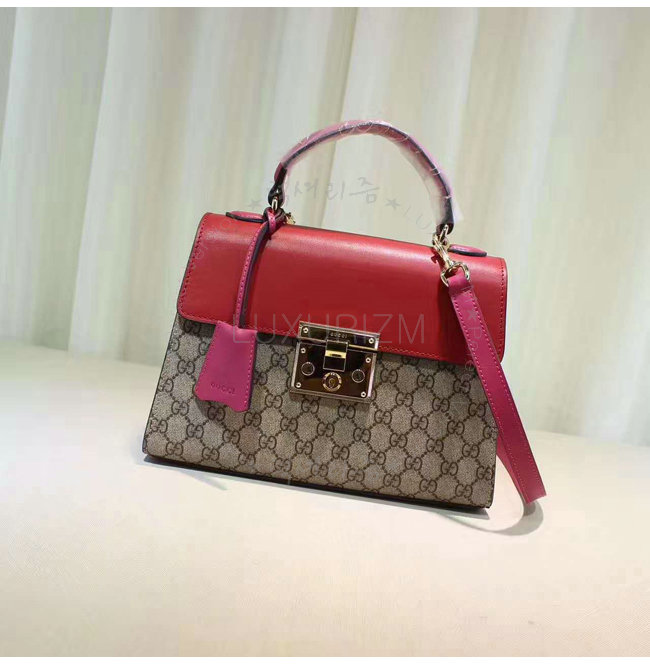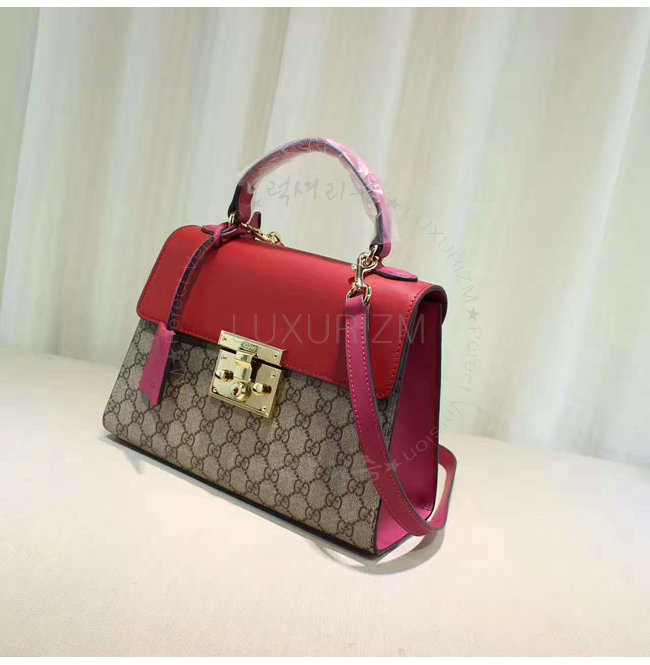 [스페셜오더]GUCCI-453188 9784 구찌 Padlock 패드락 GG 수프림 캔버스 스몰 탑 핸들백 레드