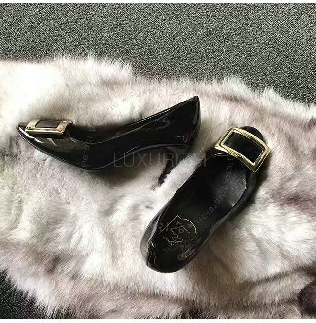 ROGER VIVIER-40015280 로저비비에 벨 트롬 페트 페이턴트 가죽 블랙 펌프스 여성용