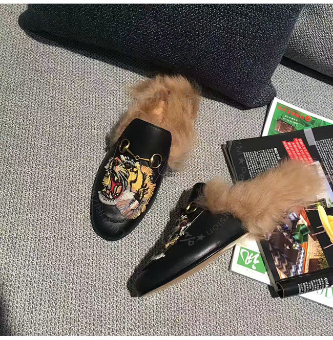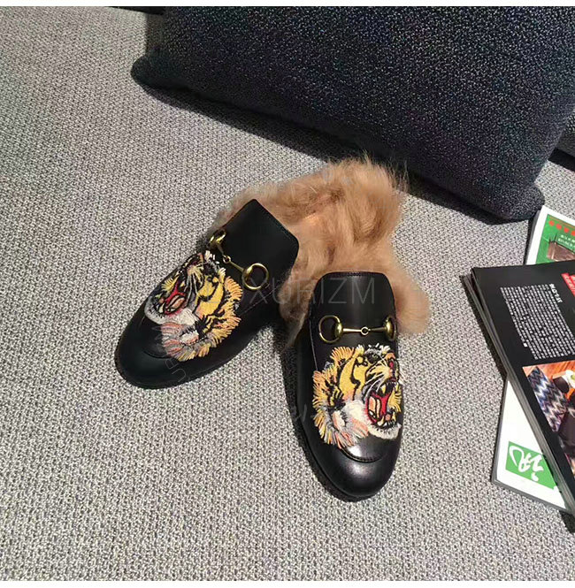 #구찌레플리카쇼핑몰 구찌여성용신발전문 by 럭셔리즘 GUCCI-462723 1063 구찌 프린스턴 타이거 자수 블랙 가죽 슬리퍼 여성용
