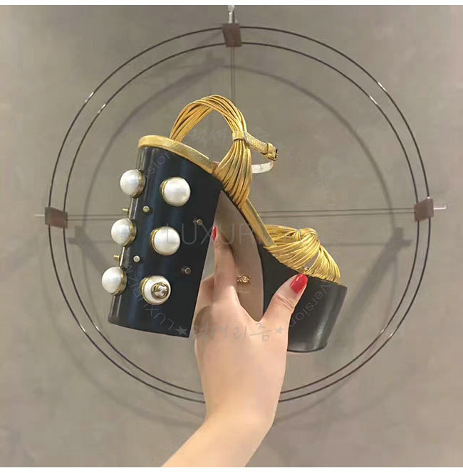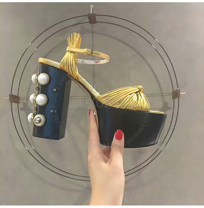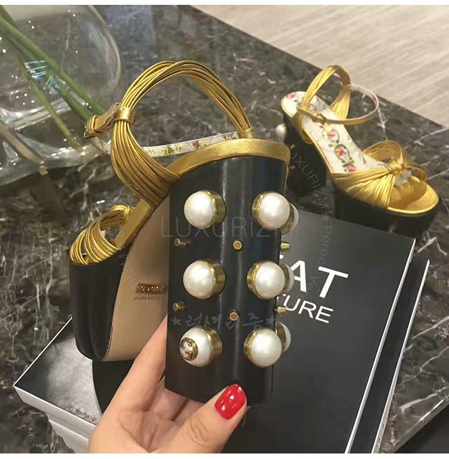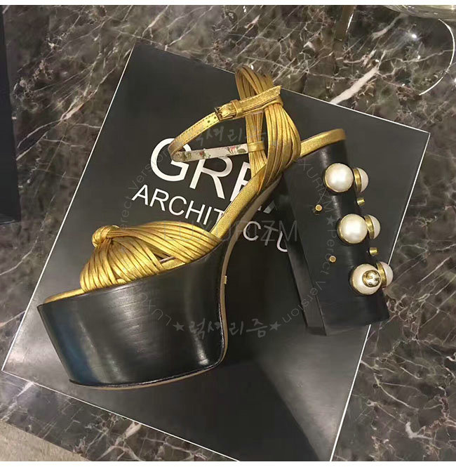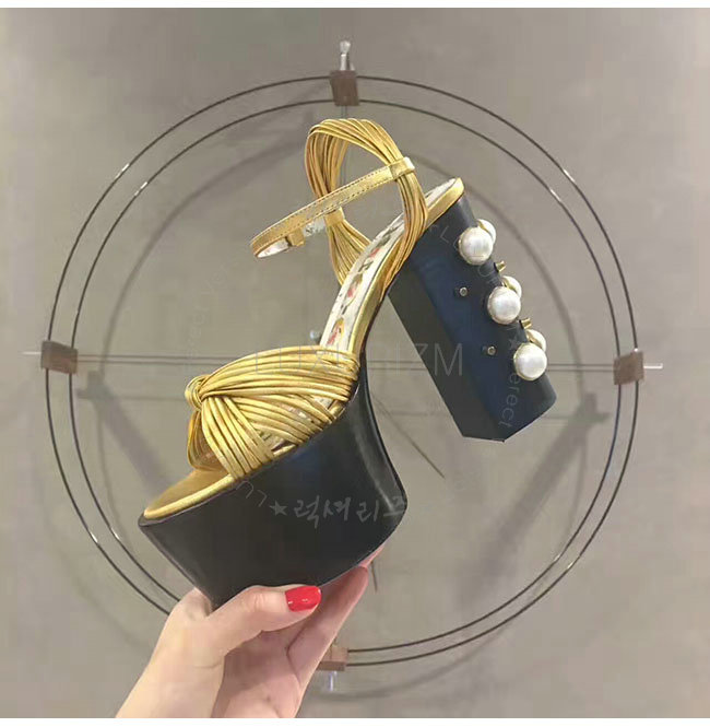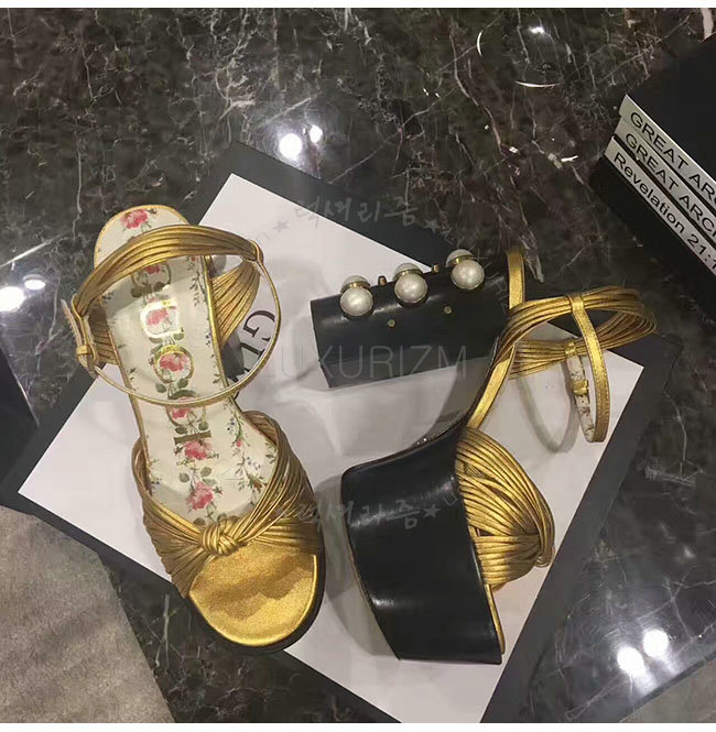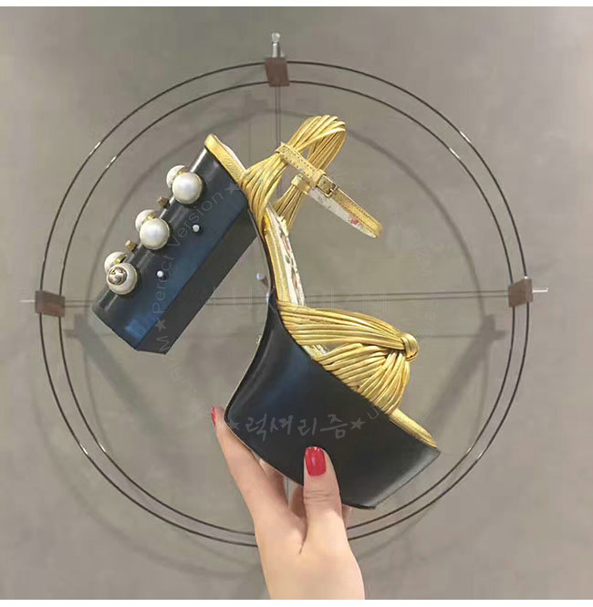 [스페셜오더]GUCCI-475078 8016 구찌 골드 리더 플랫폼 샌들 여성용