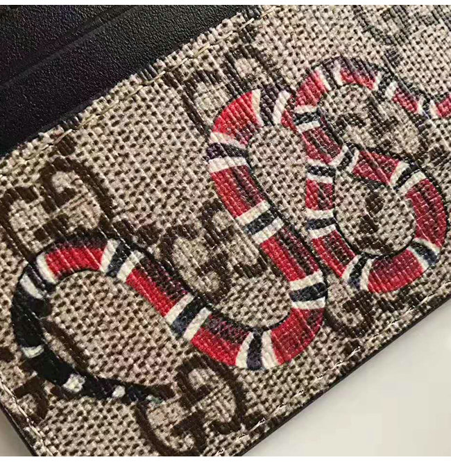 베이지/에보니 GG 수프림 및 스네이크 프린트 블랙 가죽 트리밍 5개의 카드 슬롯.