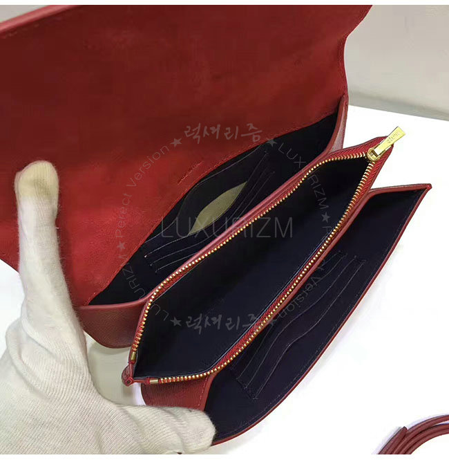 CELINE-106763 셀린느 레드 카프스킨 온 스트랩 클러치 백
