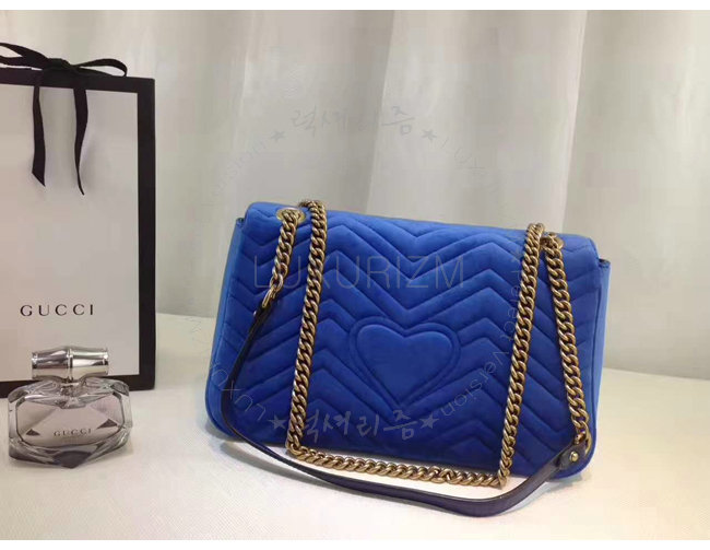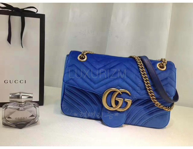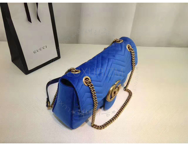 [스폐셜오더]GUCCI-443496 4511 구찌 GG Marmont 벨벳 미디엄 체인 숄더백 코발트 블루