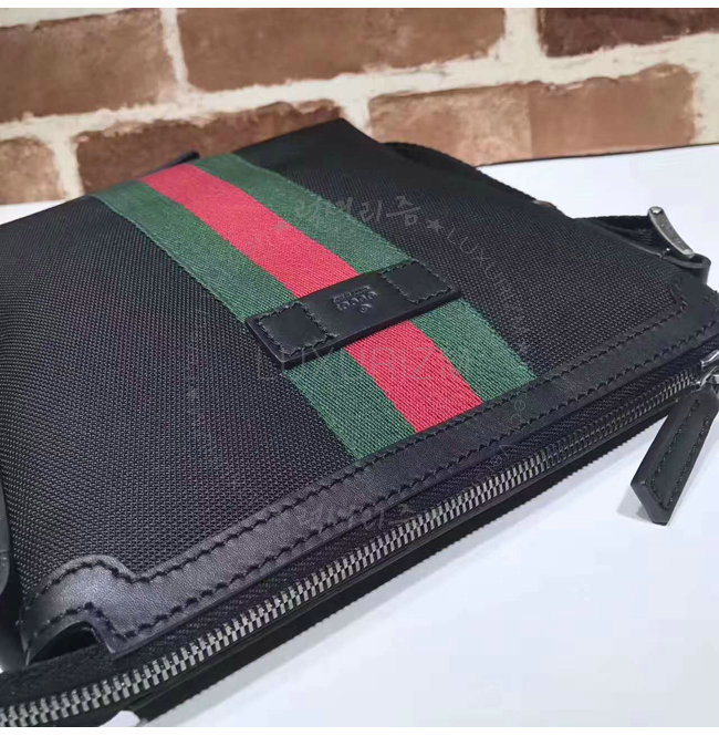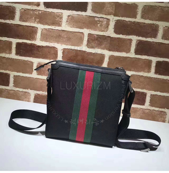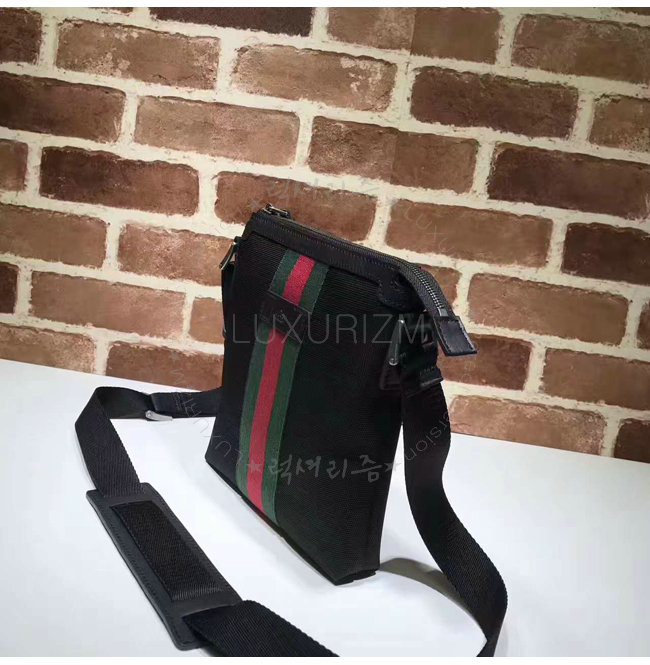 그린/레드 web 디테일의 스몰사이즈 테크노 캔버스 메신저 백.