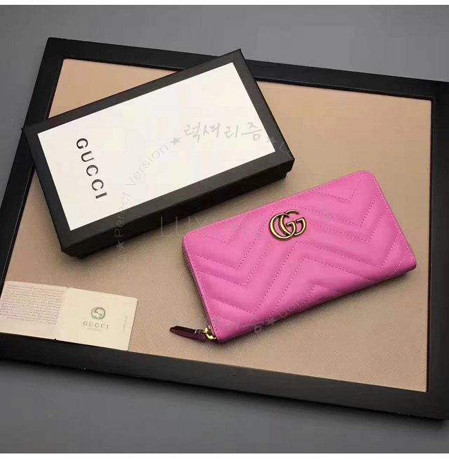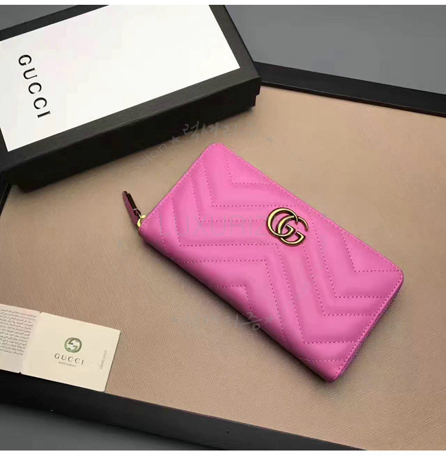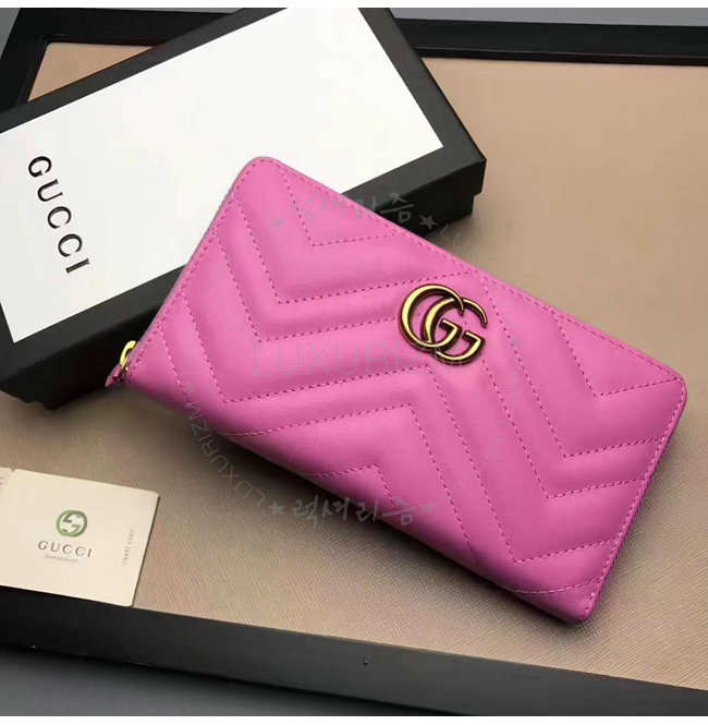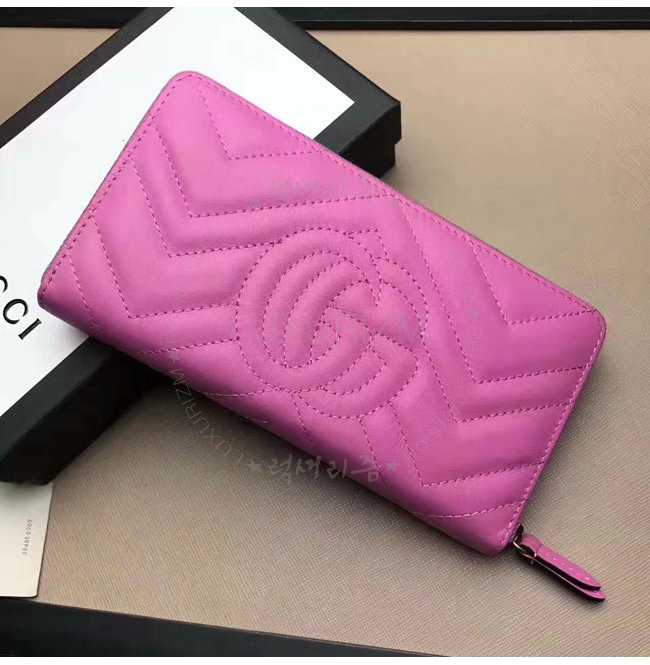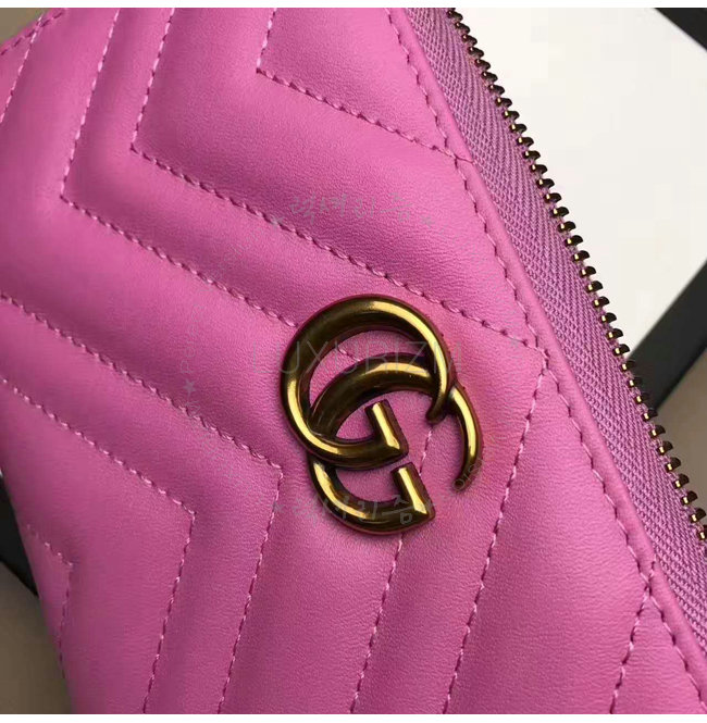 [스페셜오더]GUCCI-443123 5554 구찌 GG Marmont 마틀라세 쉐브론 가죽 집 어라운 월릿 핑크