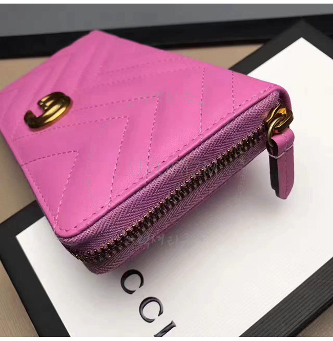[스페셜오더]GUCCI-443123 5909 구찌 [GG Marmont] 마몽 핑크 마틀라세 쉐브론 지피 월릿