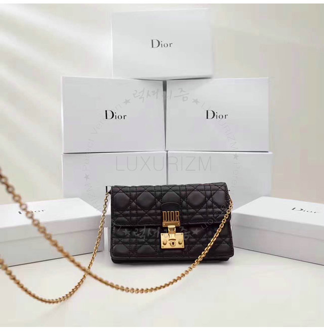 DIOR-S2012 디올 블랙 송아지 가죽 DIORADDICT WALLET ON CHAIN 클러치 백 가격 : 300,000원