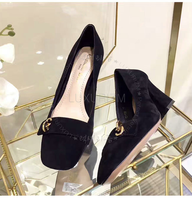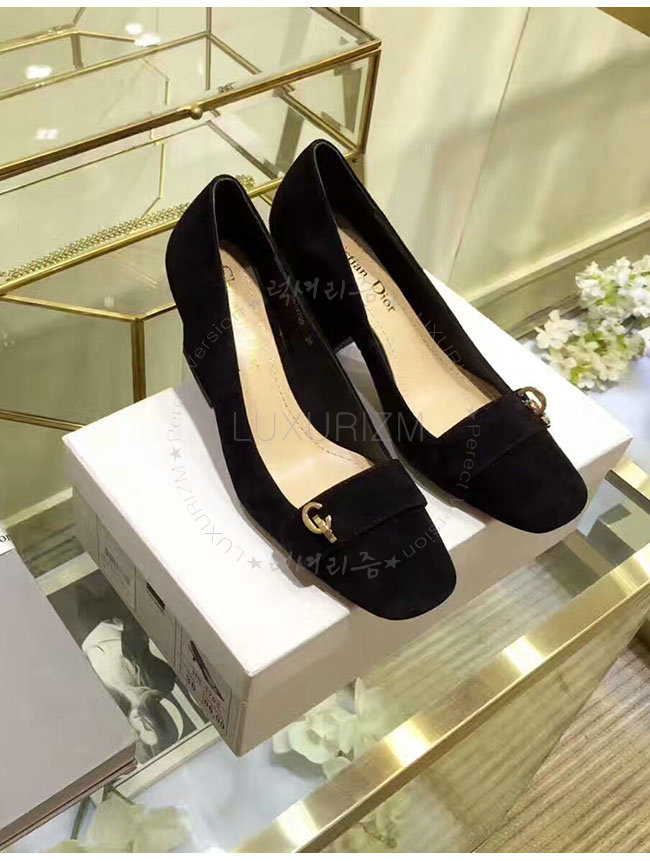 DIOR-KCP310 디올 블랙 스웨이드골드 CD 이니셜 펌프스 여성용