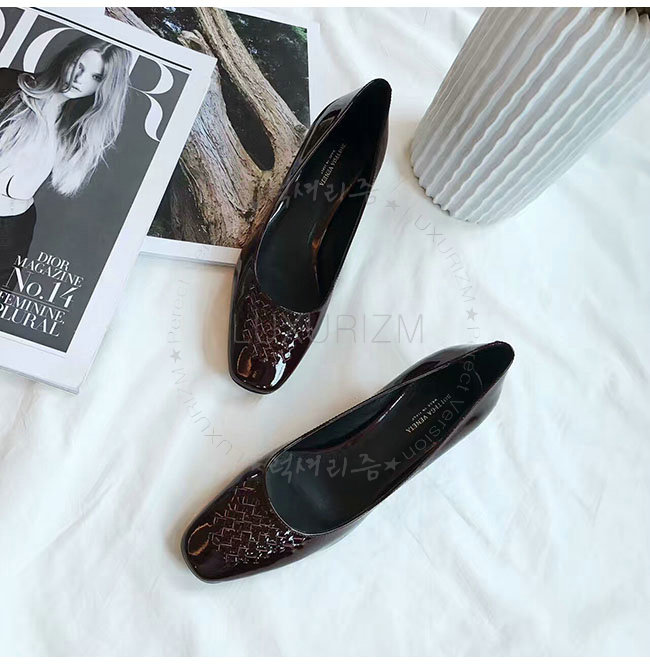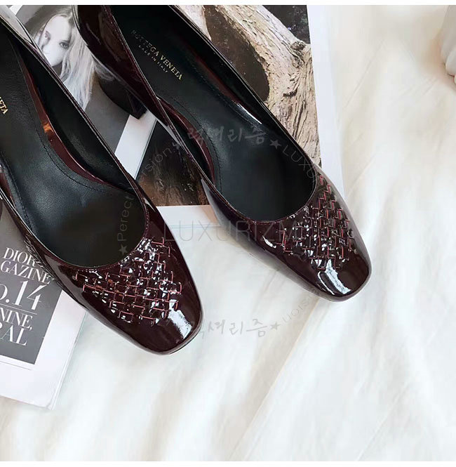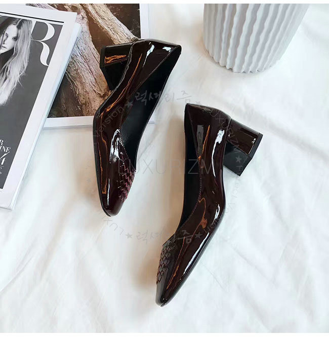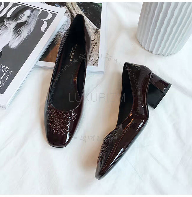 BOTTEGAVENETA-430388 보테가 베네타 바롤로 페이턴트 카프 인트레치아토 쉘부르 펌프스 여성용