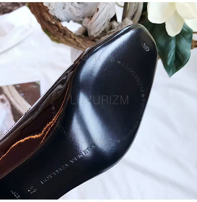 BOTTEGAVENETA-430388 보테가 베네타 네로 페이턴트 카프 인트레치아토 쉘부르 펌프스 여성용