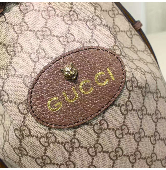 베이지/에보니 소프트 GG 수프림 및 브라운 가죽 트리밍 브라스 메탈 디테일 펠린 헤드