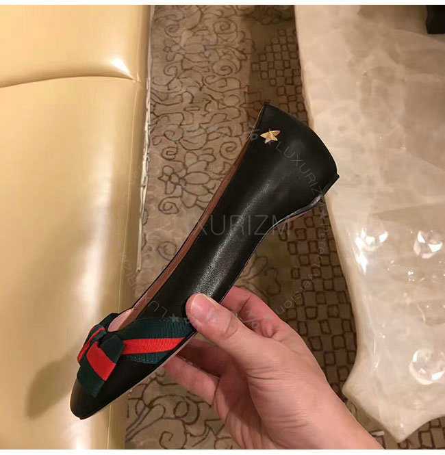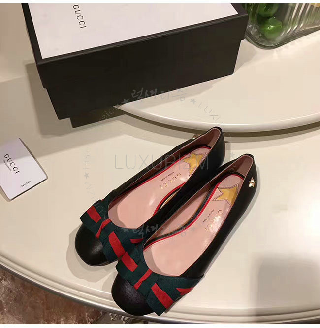 GUCCI-432045 1060 구찌 여성용 블랙 Web 플랫 슈즈