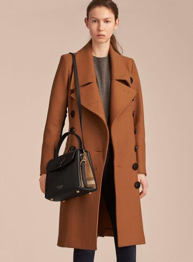 스트랩 자석스냅 단추여밈 수작업으로 마감칠된 테두리 앞면의 버버리 엠보싱로고.