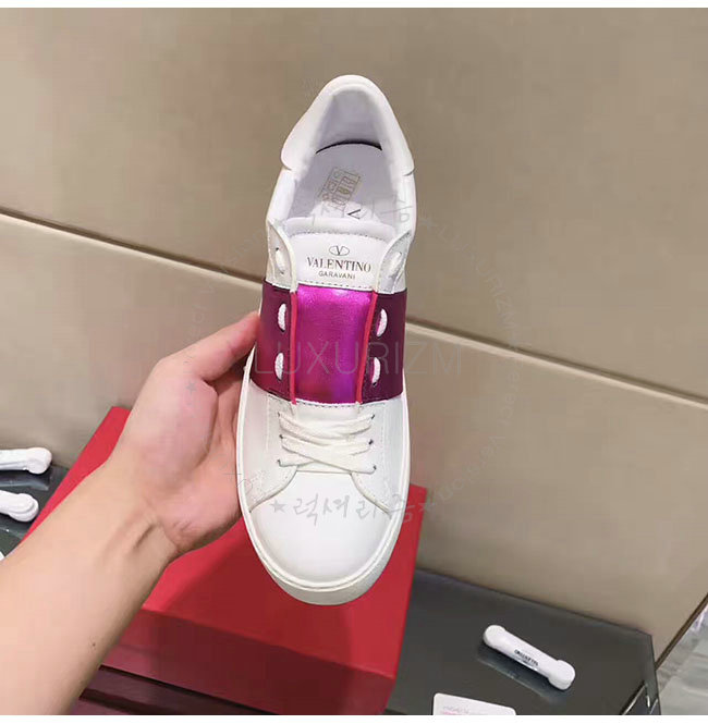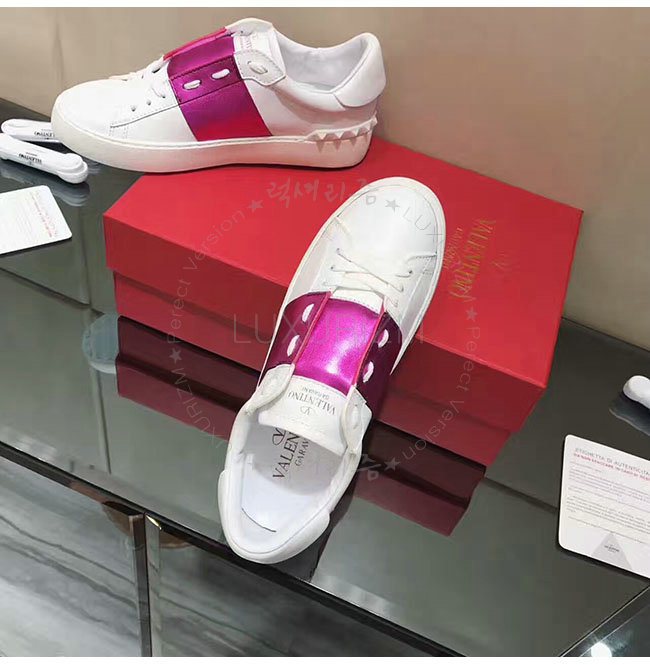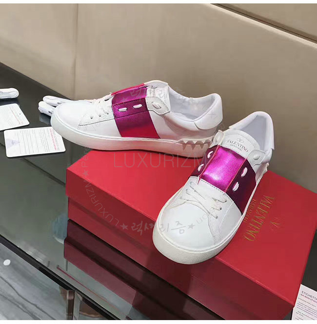VALENTINO-0S0781 발렌티노 오픈 화이트 핑크 스니커즈 여성용