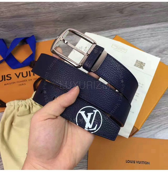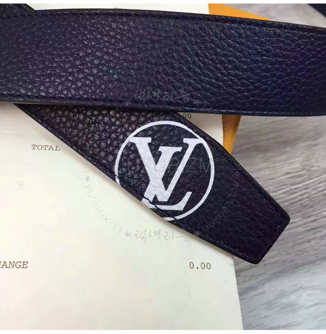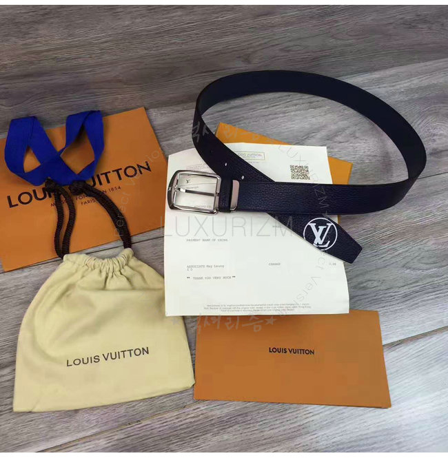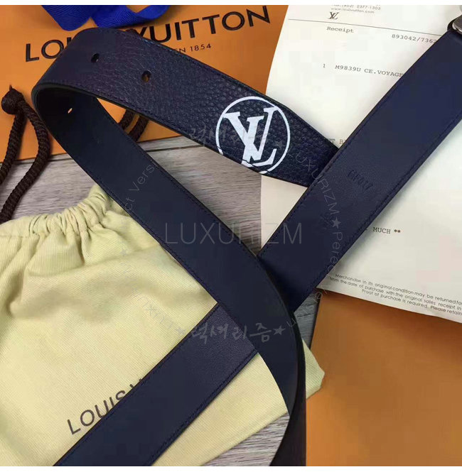 토뤼옹가죽 스트랩 LV 써클 각인 스트랩 및 루이 비통 시그니처 양각 벨트 고리.