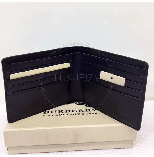 BURBERRY-40547811 버버리 트렌치 가죽 바이폴드 지갑 블랙