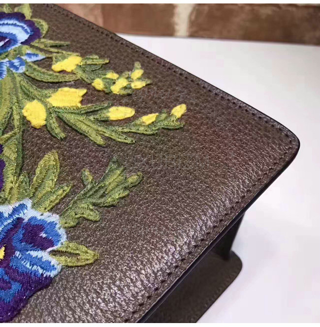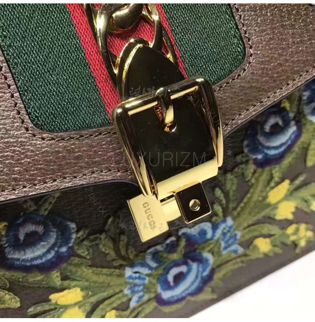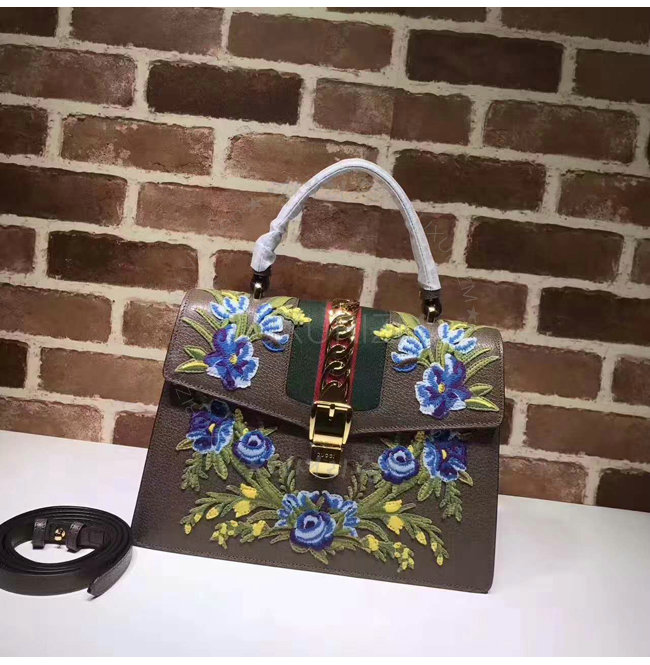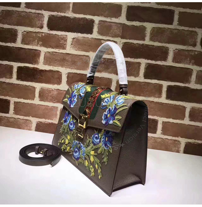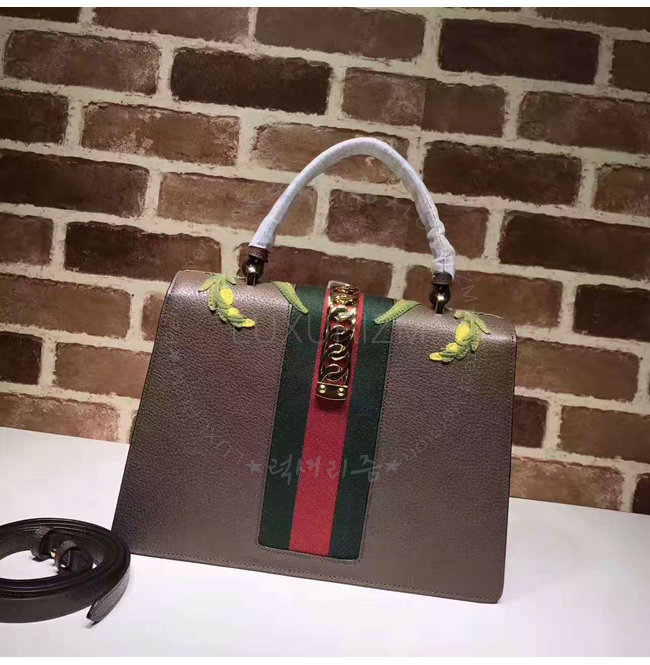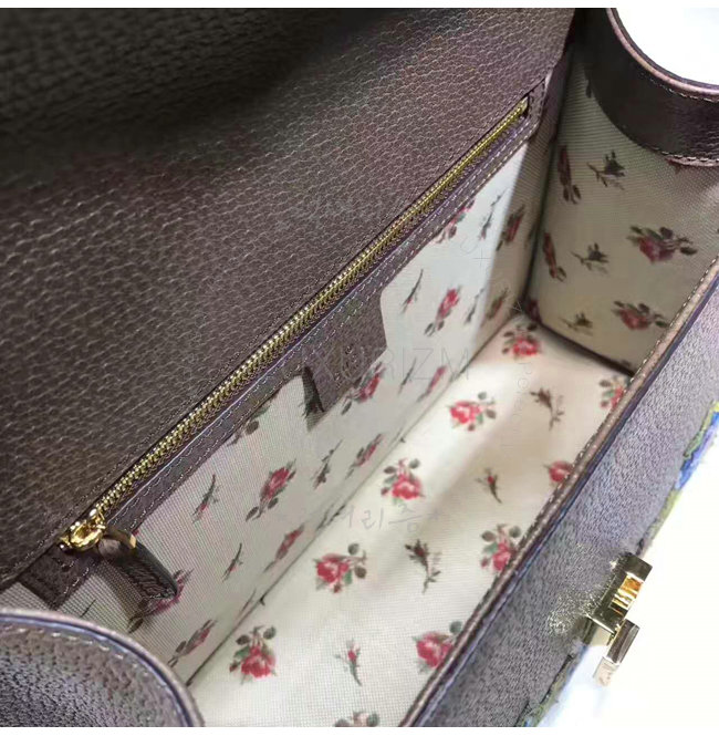[스페셜오더]GUCCI-431665 2570 구찌 Sylvie 가죽 플라워 자수 디테일 탑 핸들 백 브라운