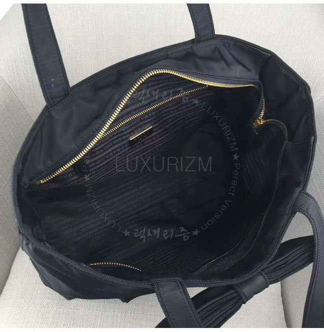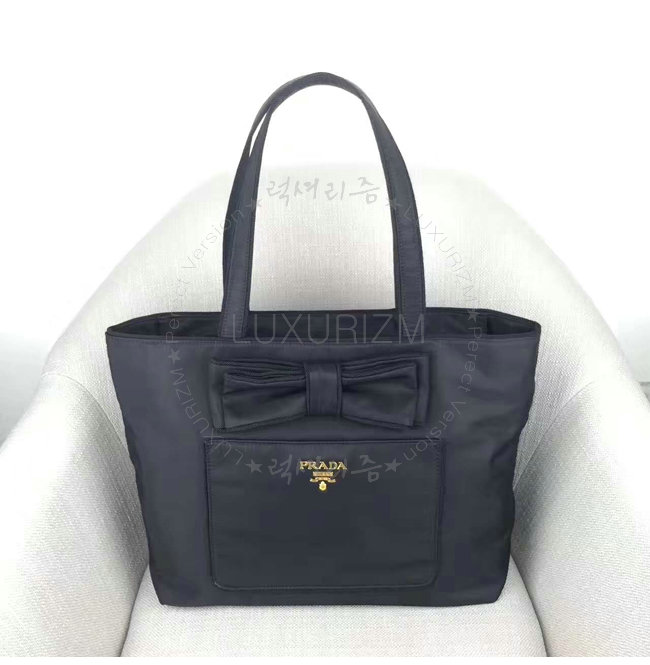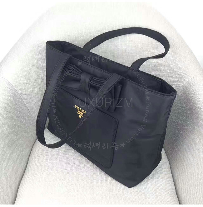 [스페셜오더]PRADA-1BG065 프라다 보우 아플리케 패브릭 토트 백 블랙
