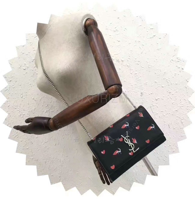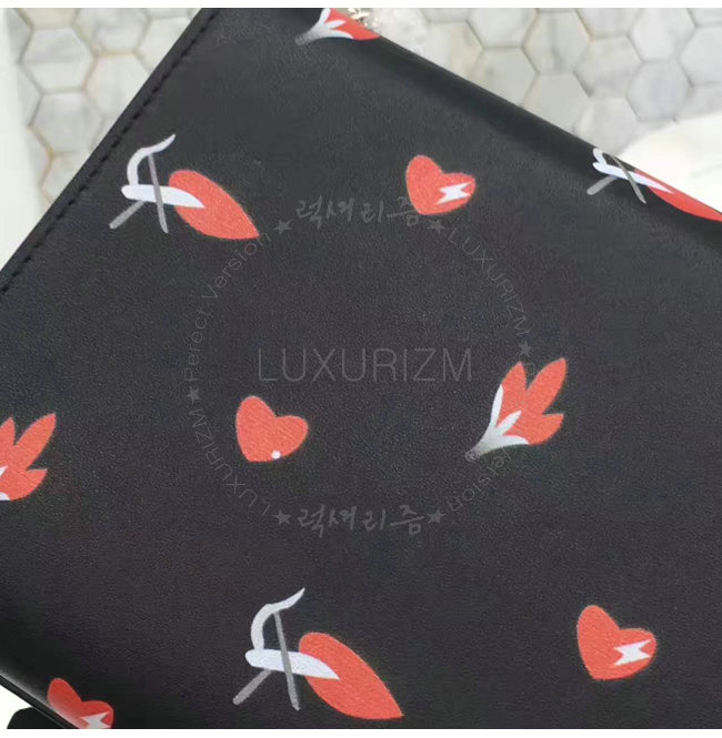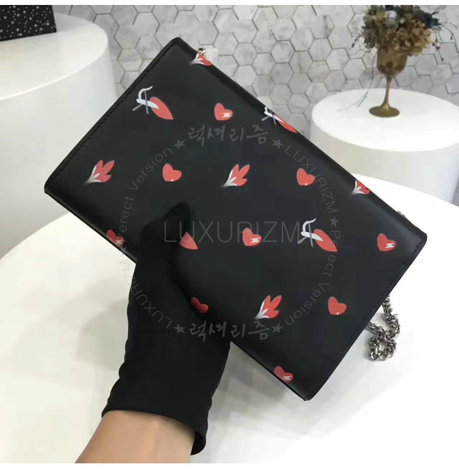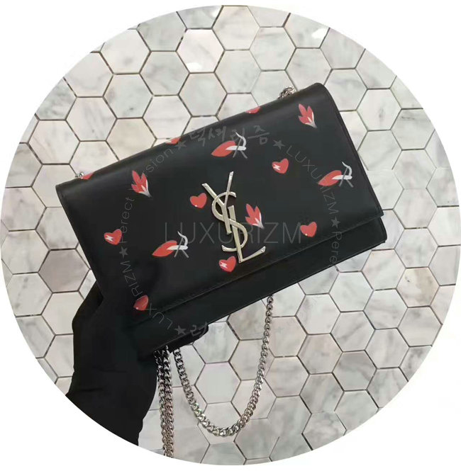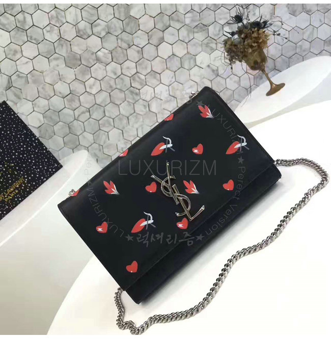 [스페셜오더]SAINT LAURENT-364051 생 로랑 블랙 레드 화이트 하트 볼트 프린트 가죽 클래식 미디엄 케이트 사첼 백