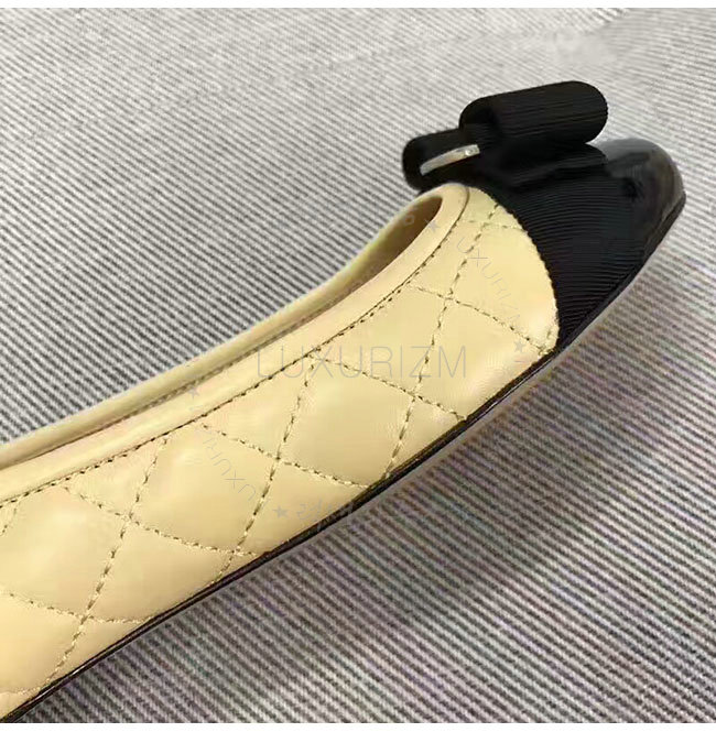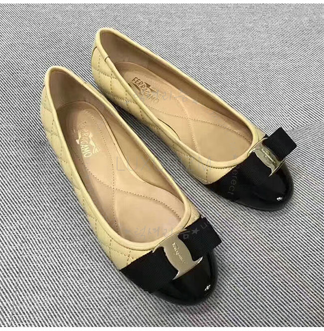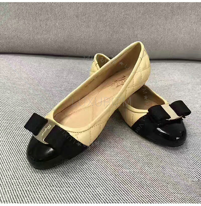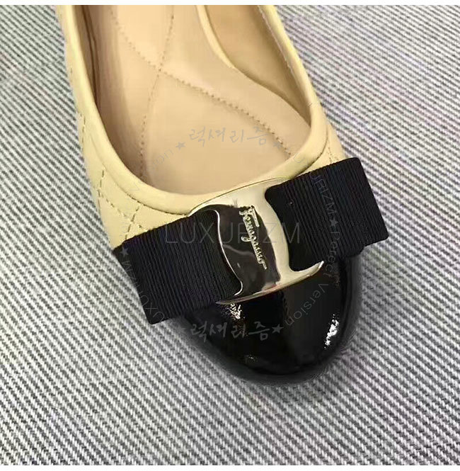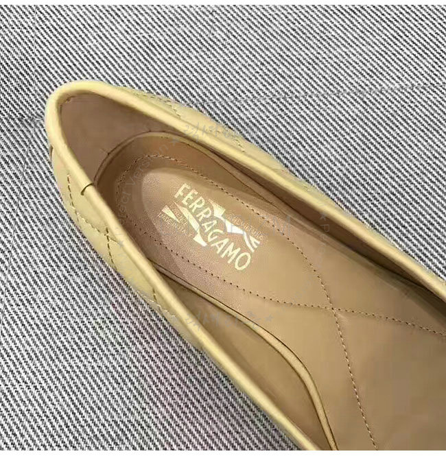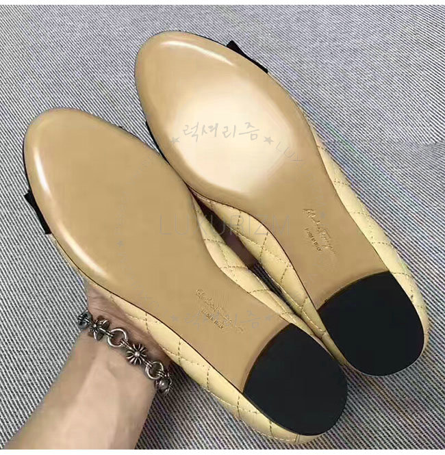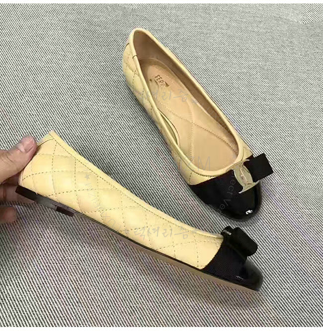FERRAGAMO-01M831 페라가모 퀼티드 바라 베이지 플랫 슈즈 여성용
