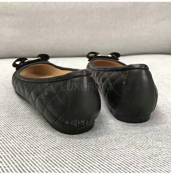 FERRAGAMO-01M831 페라가모 퀼티드 바라 블랙 플랫 슈즈 여성용