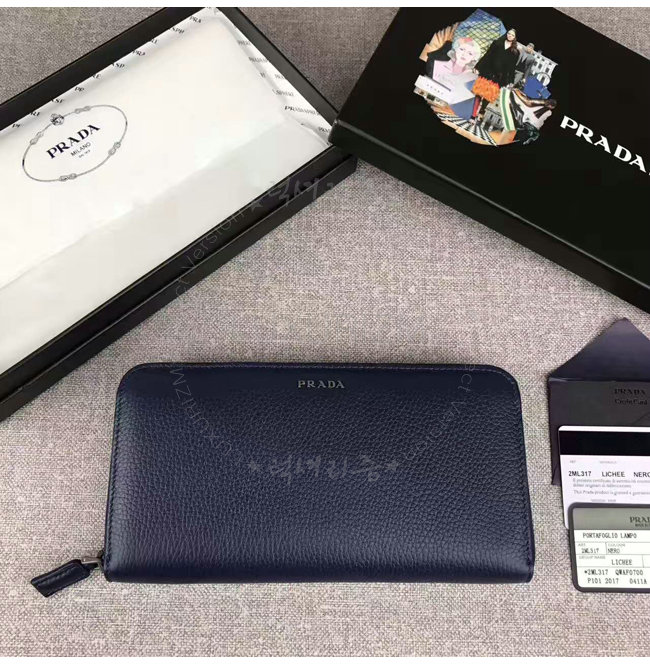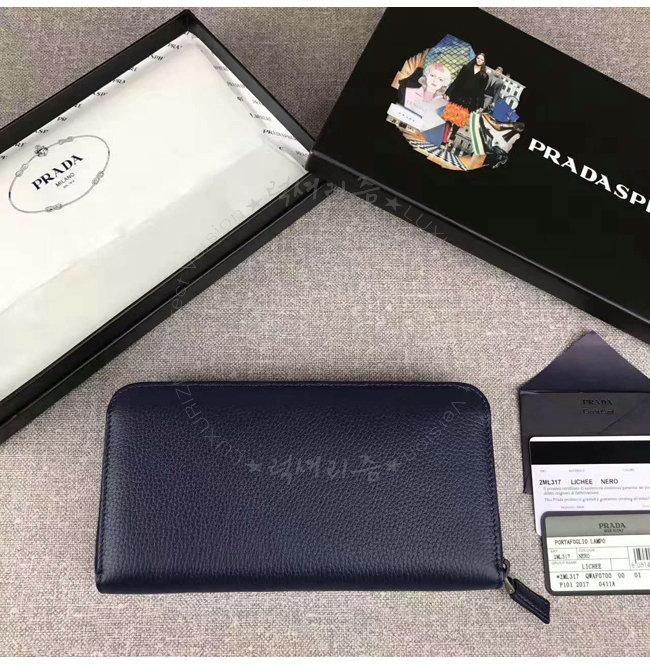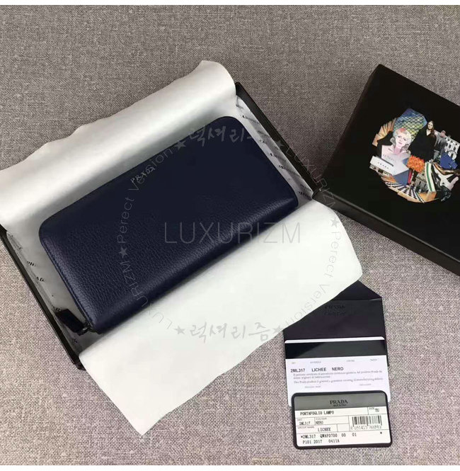 [스페셜오더]PRADA-1ML317 프라다 송아지 가죽 지퍼 지갑 네이비