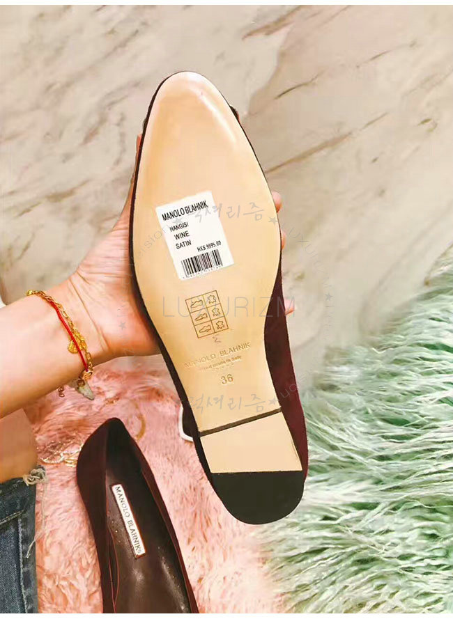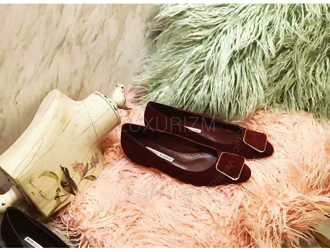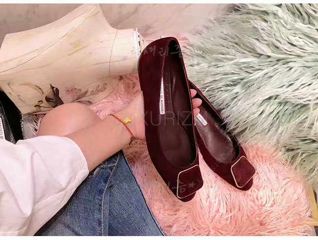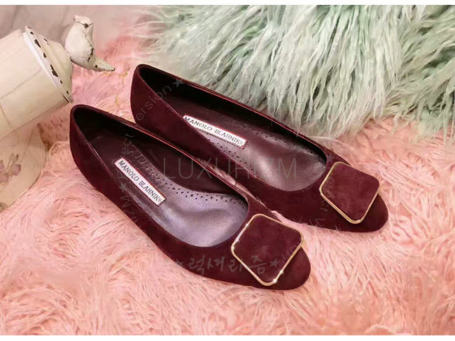 MANOLO BLAHNIK-PREPU 마놀로 블라닉 버건디 스웨이드 버클 디테일 플랫 여성용