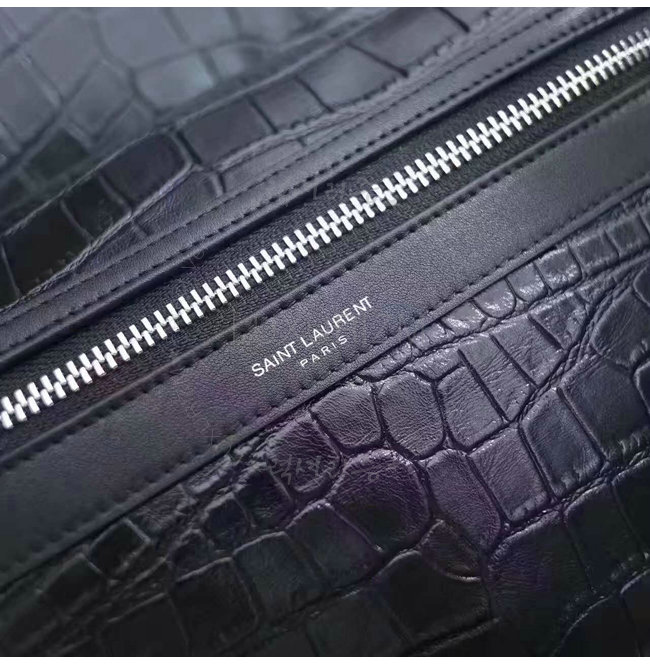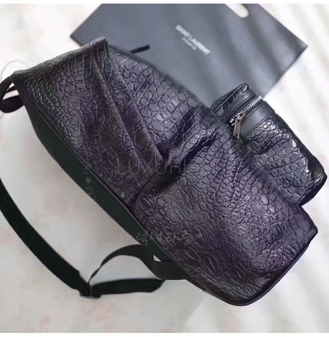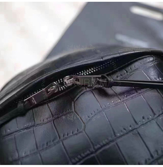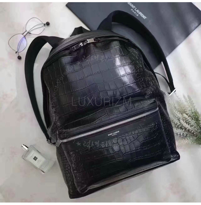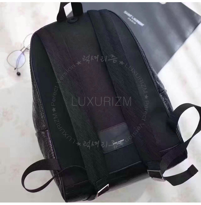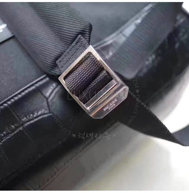 [스페셜오더]SAINT LAURENT-435988 생 로랑 크로커다일 무늬 다크 앙트라시트 가죽 블랙 나일론 시티 백팩
