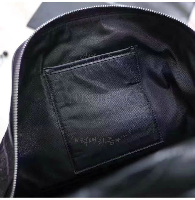 생 로랑 시그니처가 양각으로 새겨진 외부 지퍼 포켓과 내부 열쇠