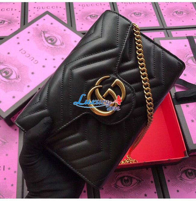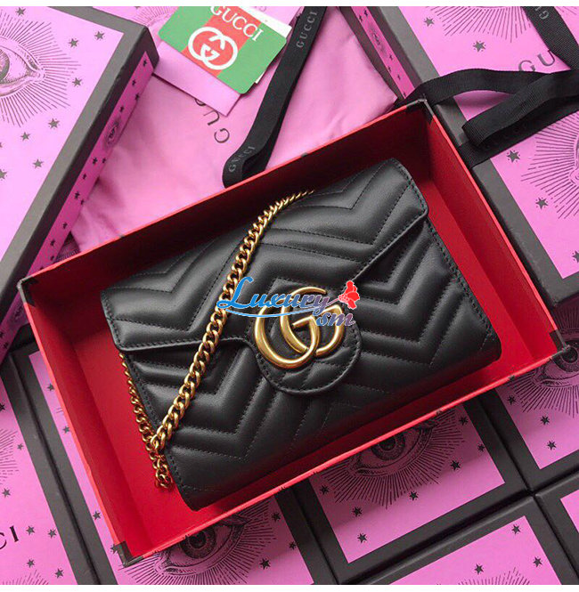 [스페셜오더]GUCCI-474575 1000 구찌 GG Marmont 마틀라세 가죽 미니 체인 백 블랙