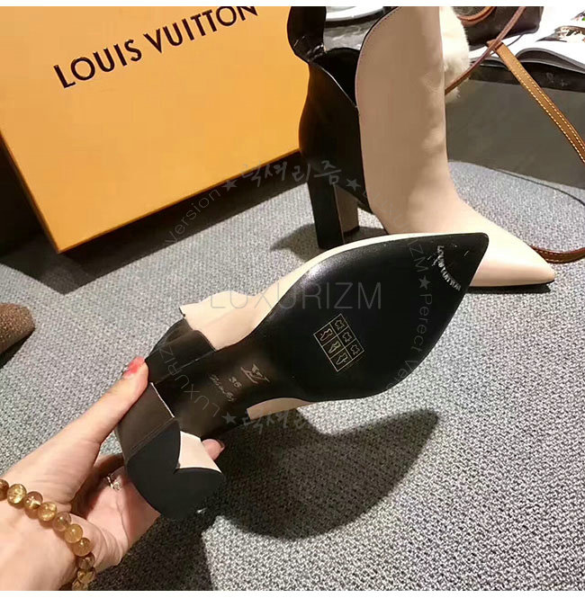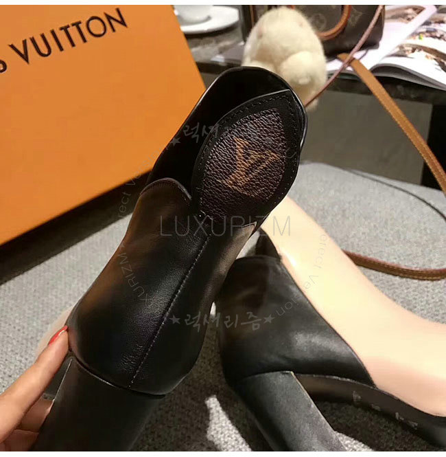 플레인 송아지 가죽 어퍼와 모노그램 캔버스 뒤축이 어우러진 디자인입니다. 루이 비통의