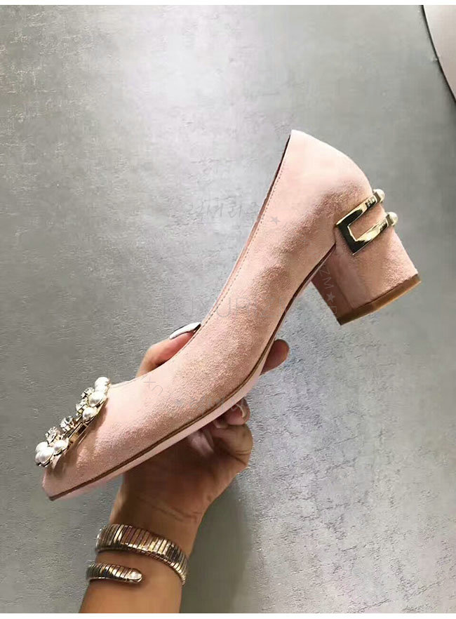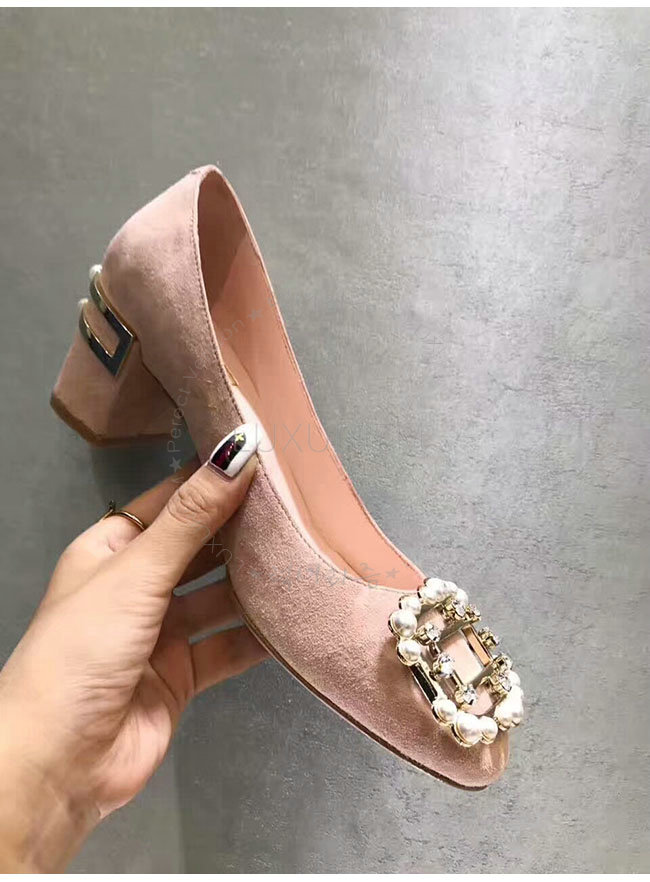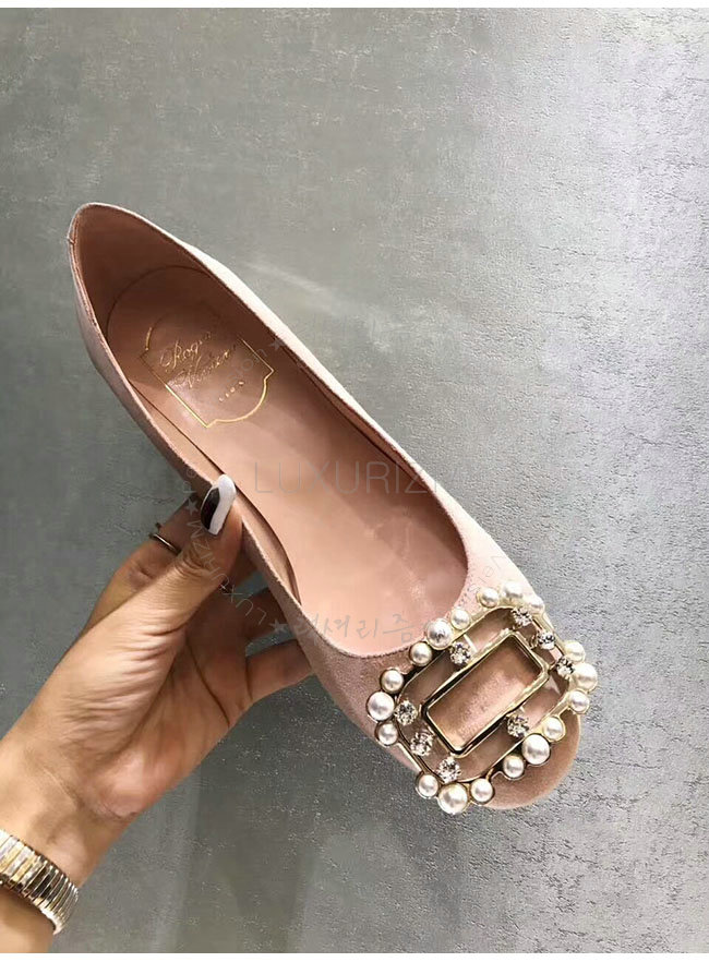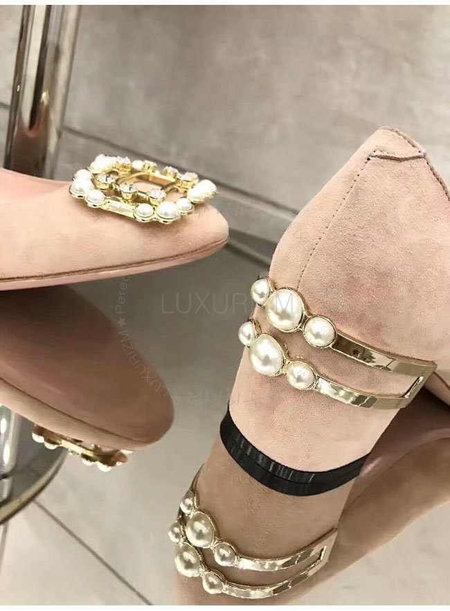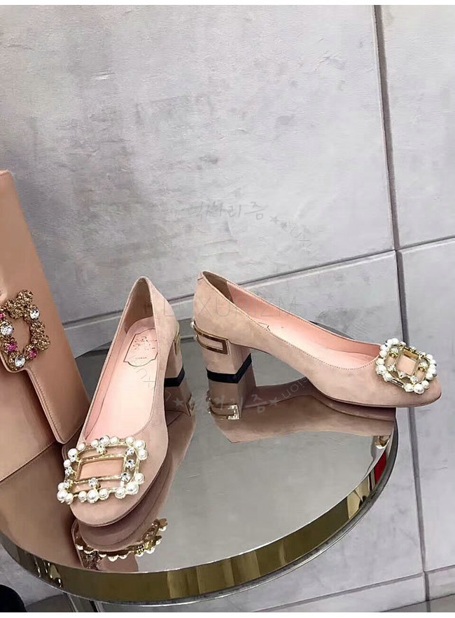 ROGER VIVIER-46419650 로저비비에 스웨이드 램스킨 핑크 버클 펌프스 여성용