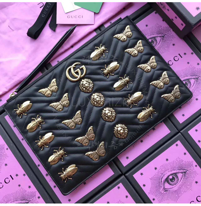 [스페셜오더]GUCCI-476440 1000 구찌 GG Marmont 애니멀 스터드 파우치 블랙