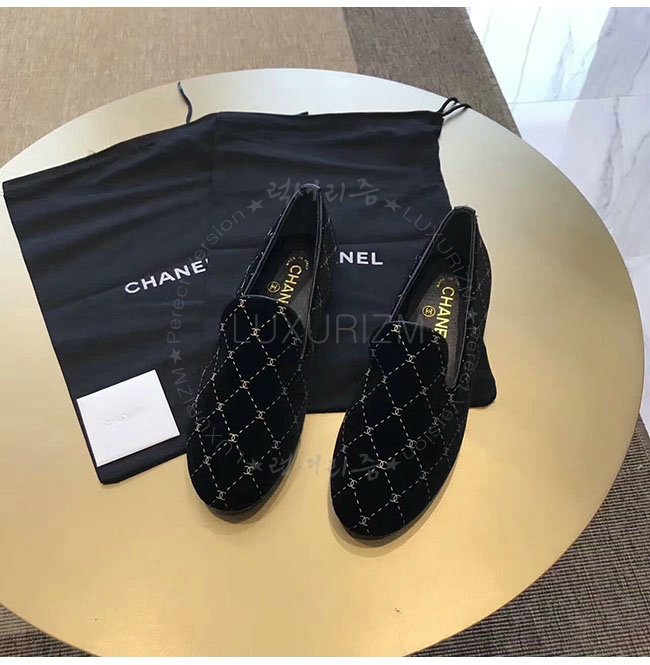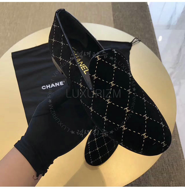 CHANEL-G33126 샤넬 블랙 벨벳 로퍼 여성용