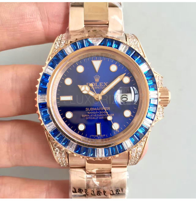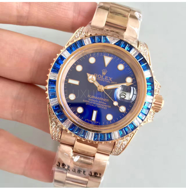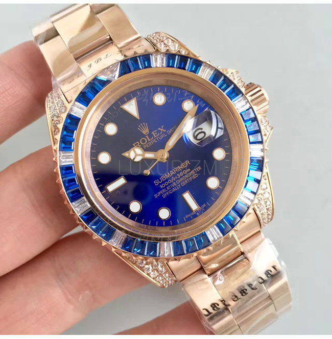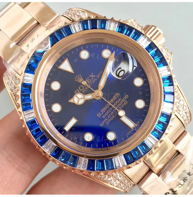 [스페셜오더]ROLEX-1888 롤렉스 오이스터 퍼페츄얼 서브 마리너 로즈 골드 블루 사파이어 다이아 블루 다이얼 40mm