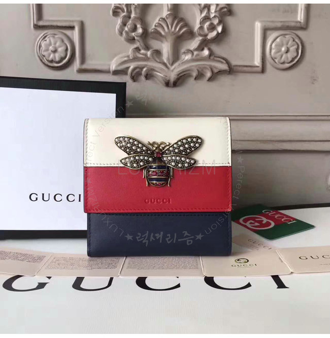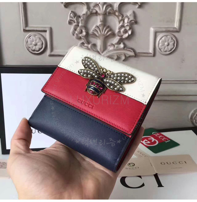 [스페셜오더]GUCCI-476075 4160 구찌 Queen Margaret 가죽 플랩 월릿 블루 레드