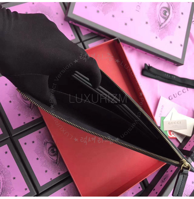 [스페셜오더]GUCCI-428724 1000 구찌 Animalier 블랙 가죽 파우치