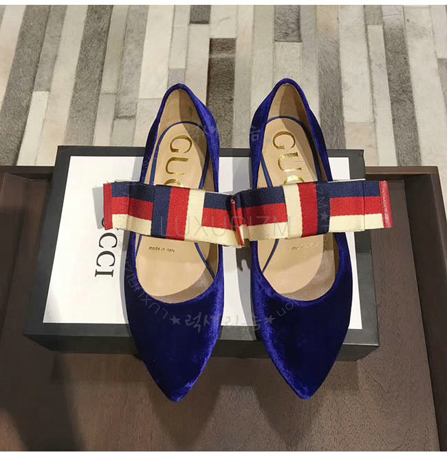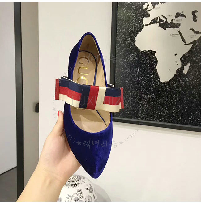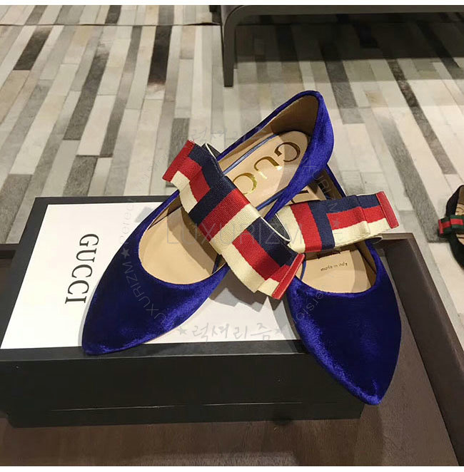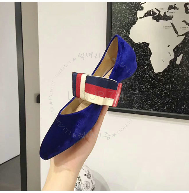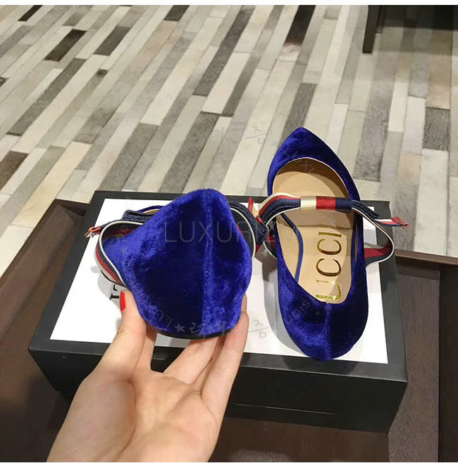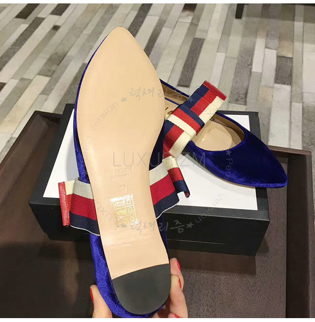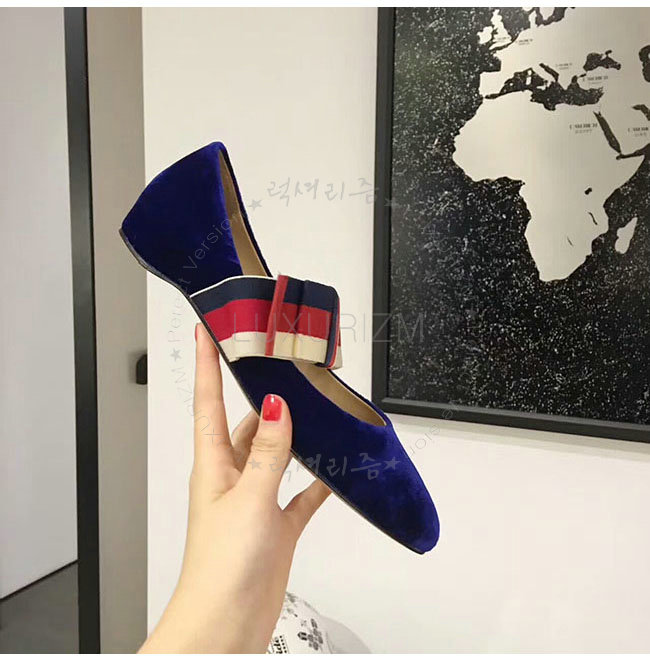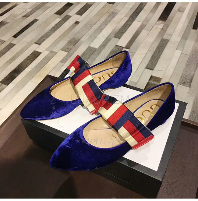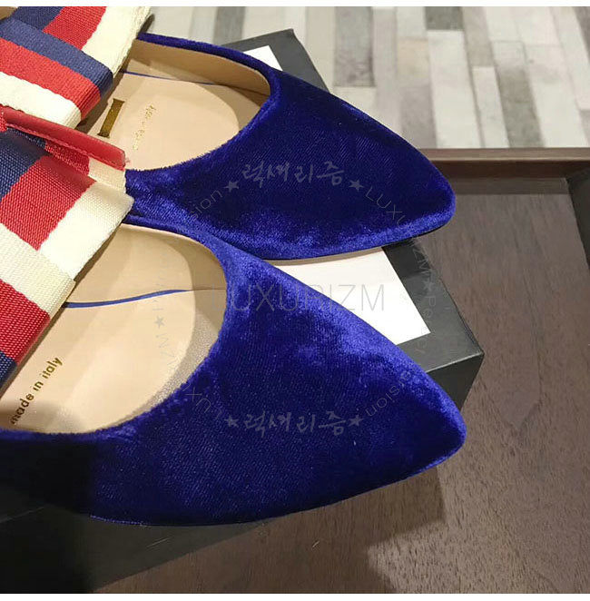 GUCCI-474469 6587 구찌 실비의 활 네이비 벨벳 플랫 발레 여성용