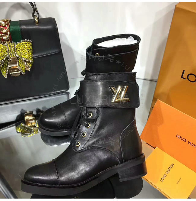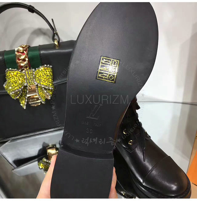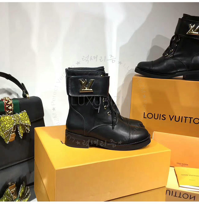 LOUIS VUITTON-1A1IY7 루이비통 블랙 가죽 원더랜드 플랫 레인저 여성용