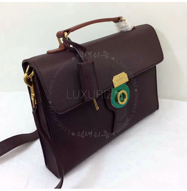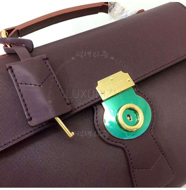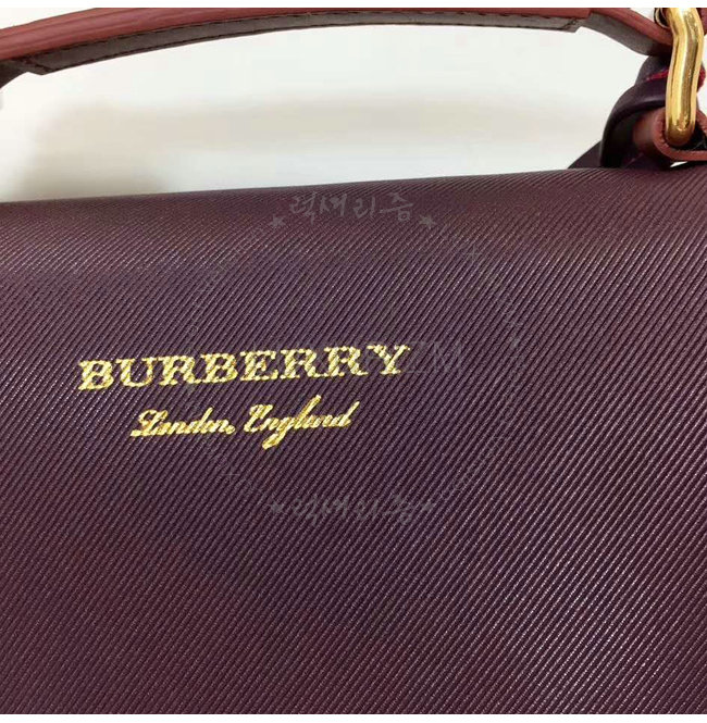 푸시 락 잠금장치 상단 가죽손잡이 수작업으로 마감칠된 테두리 금속하드웨어 버버리 엠보싱 로고.