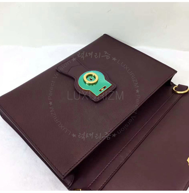 에서 디자인 된 클래식한 사첼은 접이식 앞면 독특한 오버사이즈 잠금장식 및 버클 디테일