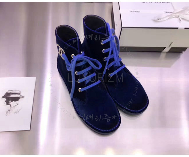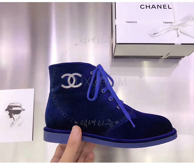 CHANEL-G33127 샤넬 블루 벨벳 쇼트 부츠 여성용