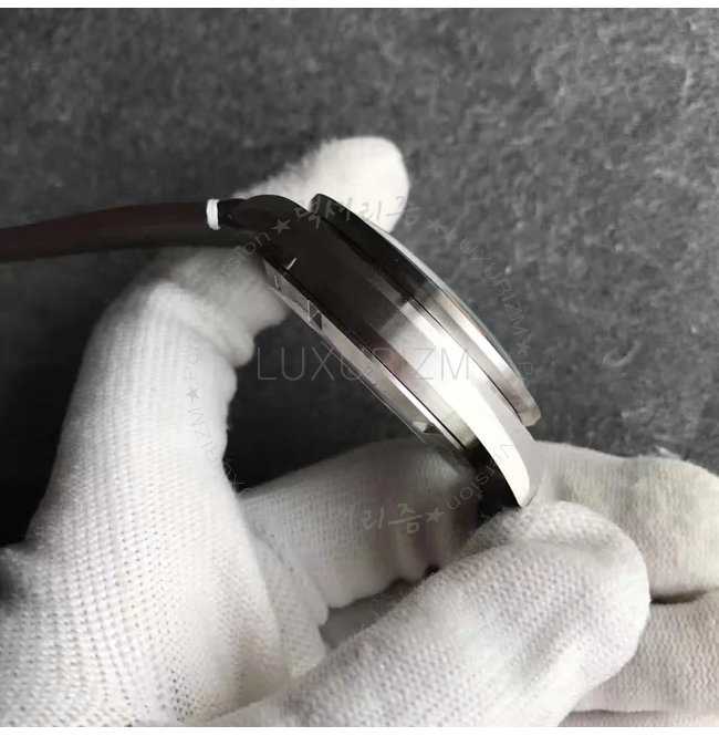 -스테인레스 스틸케이스/알루미늄 베젤/사파이어 글래스/브라운 가죽스트랩.