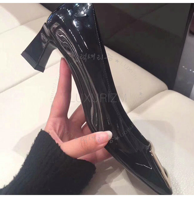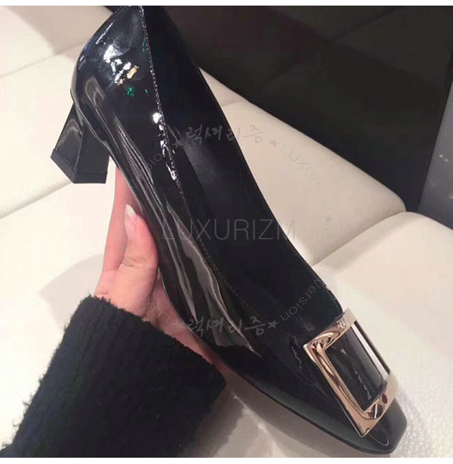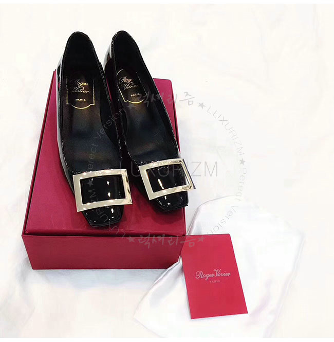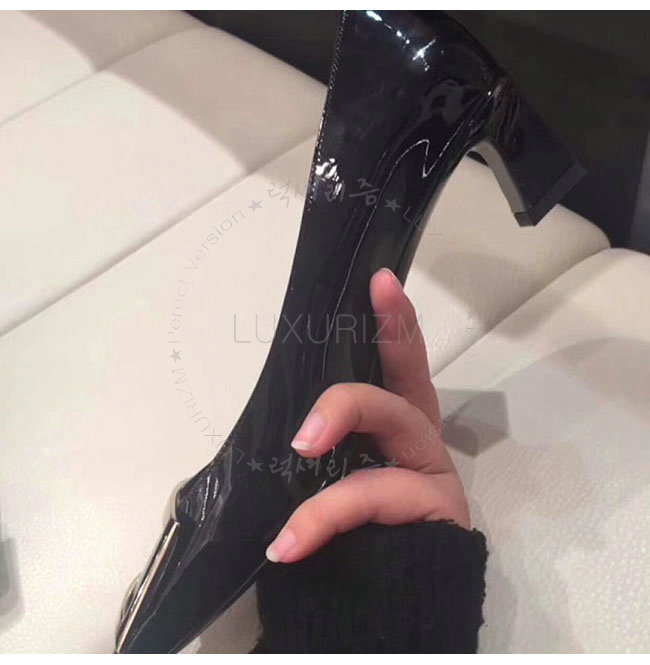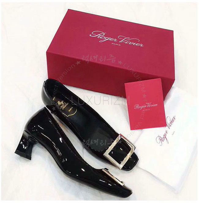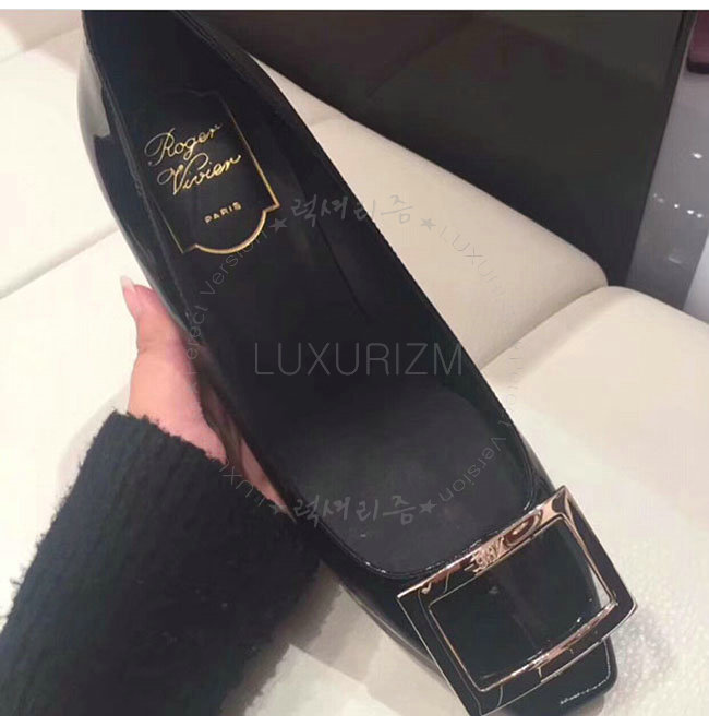 ROGER VIVIER-40315850 로저비비에 트럼펫 블랙 페이턴트 가죽 펌프스 여성용