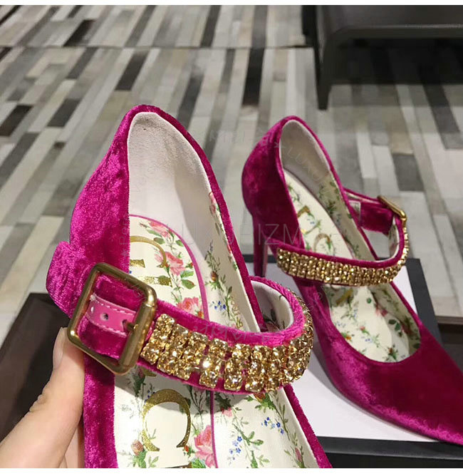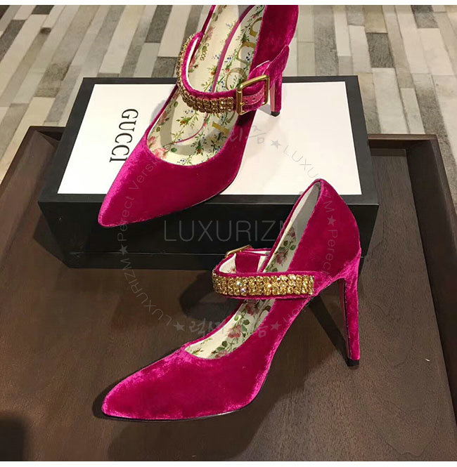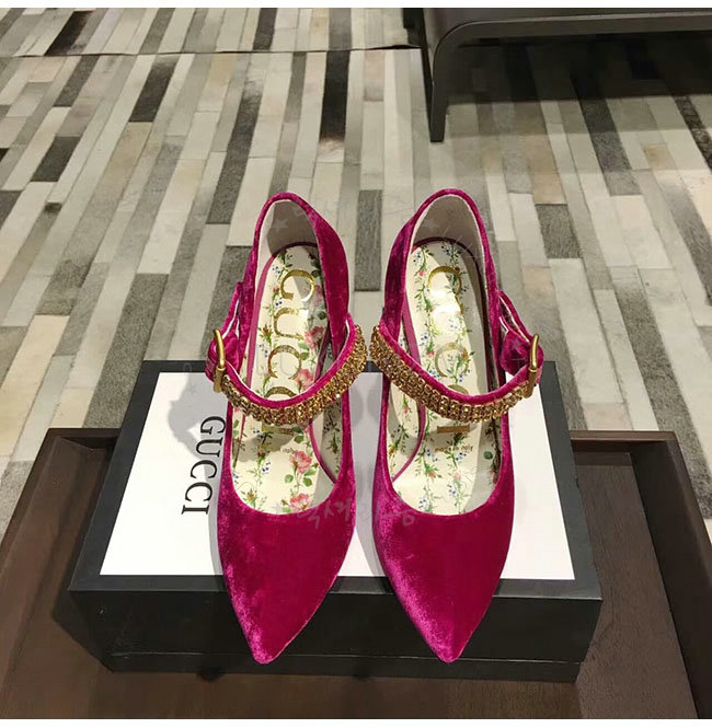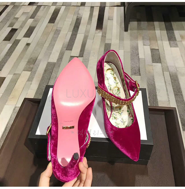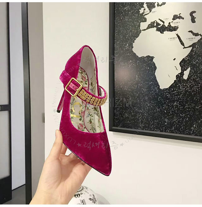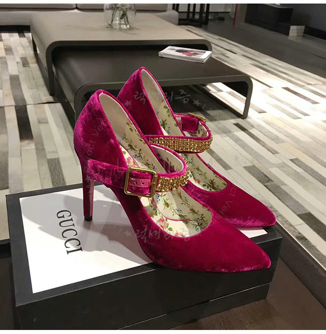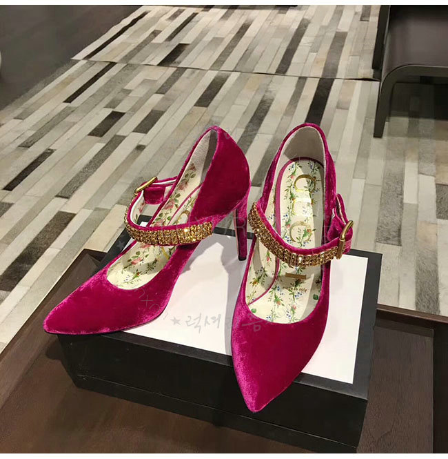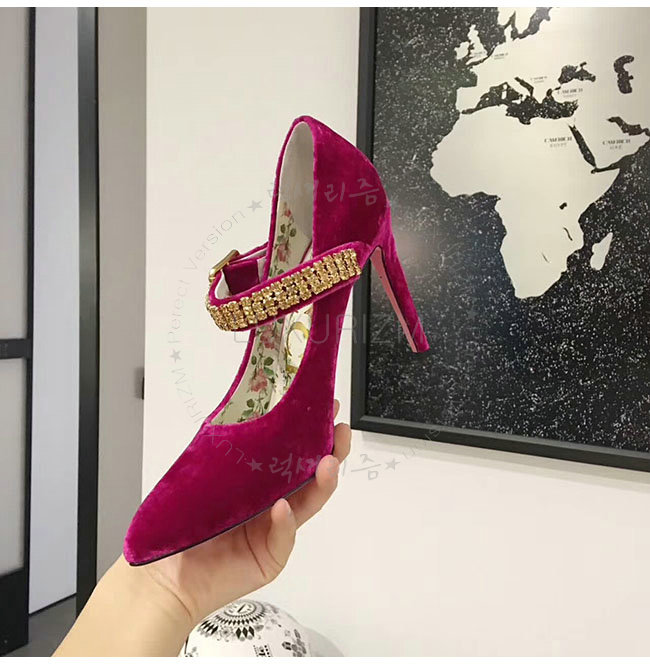 GUCCI-494233 5690 구찌 자홍 벨벳 크르스탈 펌프스 여성용