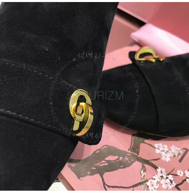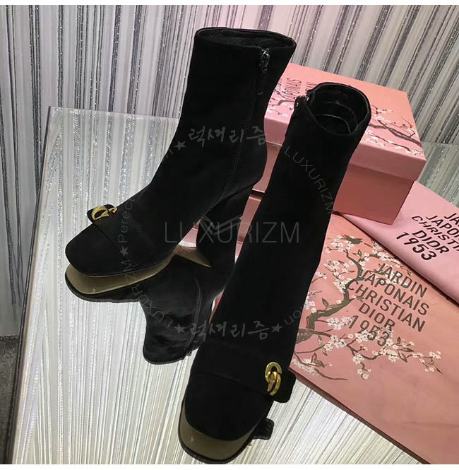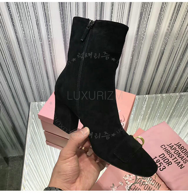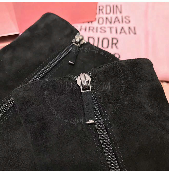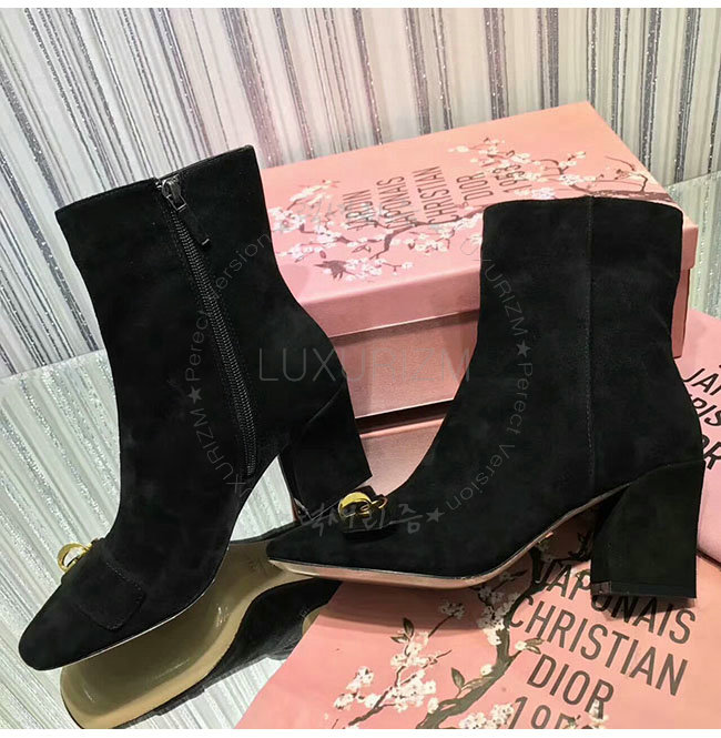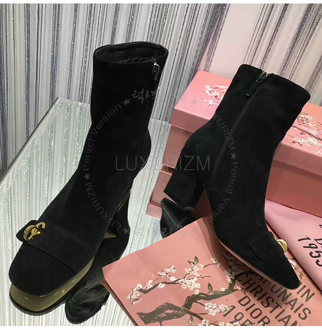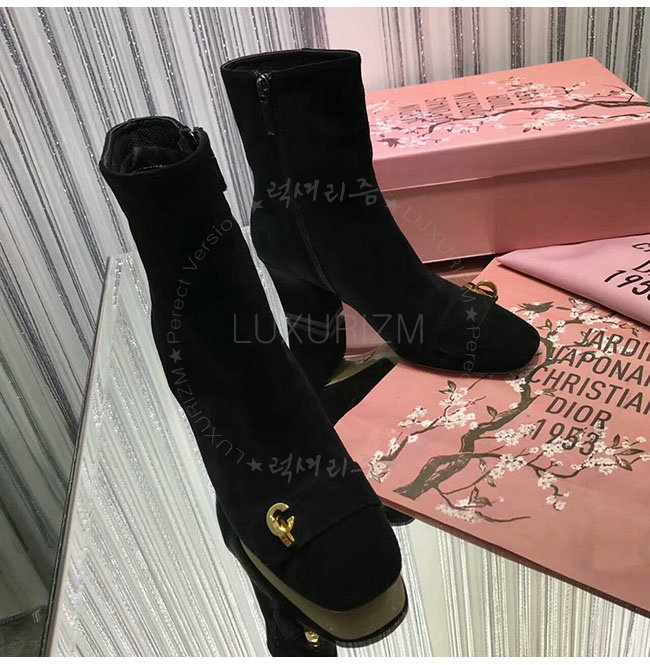 DIOR-KDI412 디올 블랙 스웨이드 송아지 가죽 앵클 부츠 골드 CD 이니셜 여성용