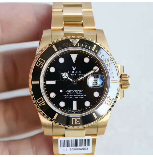 [스페셜오더]ROLEX-롤렉스 오이스터 퍼페츄얼 서브마리너 데이트 옐로우 골드 (18K 포금) 블랙다이얼 워치 40mm