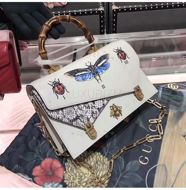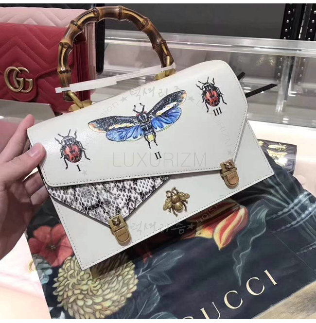 [스페셜오더]GUCCI-488715 9058 구찌 곤충 프린트 가죽 탑 핸들 백 화이트